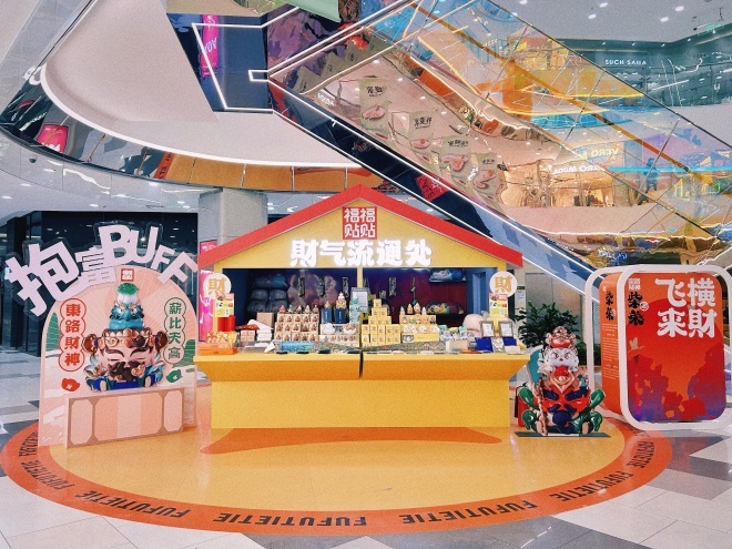 與此同時,持續(xù)到2月29日的人氣國潮IP「福福貼貼」快閃店火爆異常,五路財神霸氣齊聚一堂,來打卡沾財氣的人流絡繹不絕,充滿巧思的趣味周邊更讓當代年輕人趨之若鶩,爭相搶購。
