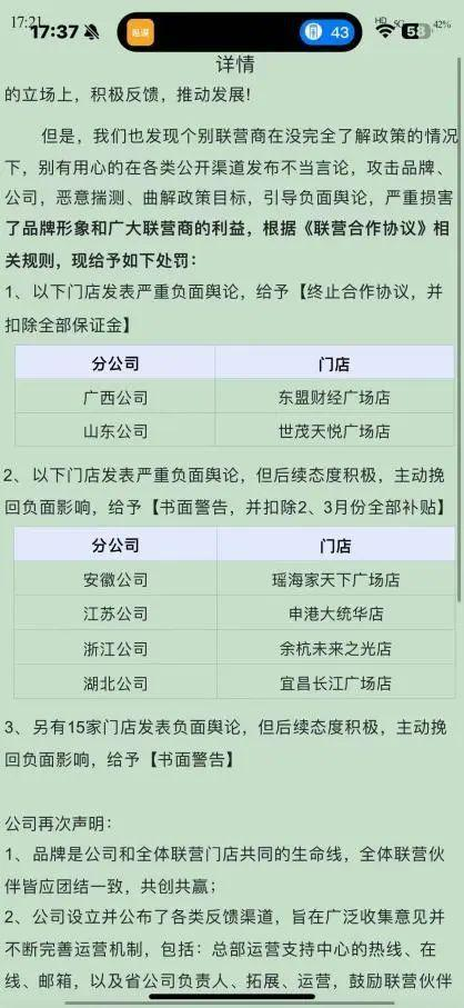 此消息一出,立刻激起了諸多不滿,一位聯(lián)營(yíng)商在社交媒體平臺(tái)直接指出“門店喪失了對(duì)財(cái)務(wù)權(quán)的把控”“物料的損耗率難以估計(jì)”“以解約威脅聯(lián)營(yíng)商訂酒”等問題,最后更是沉痛的表示“庫(kù)迪咖啡已死”。