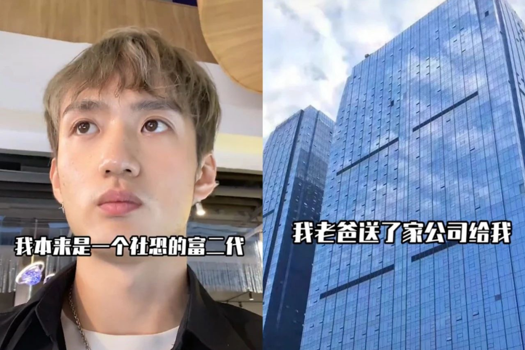 “我本是一個(gè)社恐的富二代,昨天我生日,我老爸送了家公司給我!痹诹_成的成名故事里,他是這樣開場(chǎng)的。