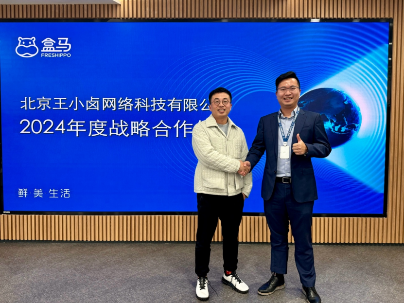 雙方戰(zhàn)略合作的簽字儀式,在盒馬位于上海的總部舉行。王小鹵創(chuàng)始人王雄親自出席儀式,并一臉笑容與盒馬成品部總監(jiān)張宇握手合影,以示合作達成。