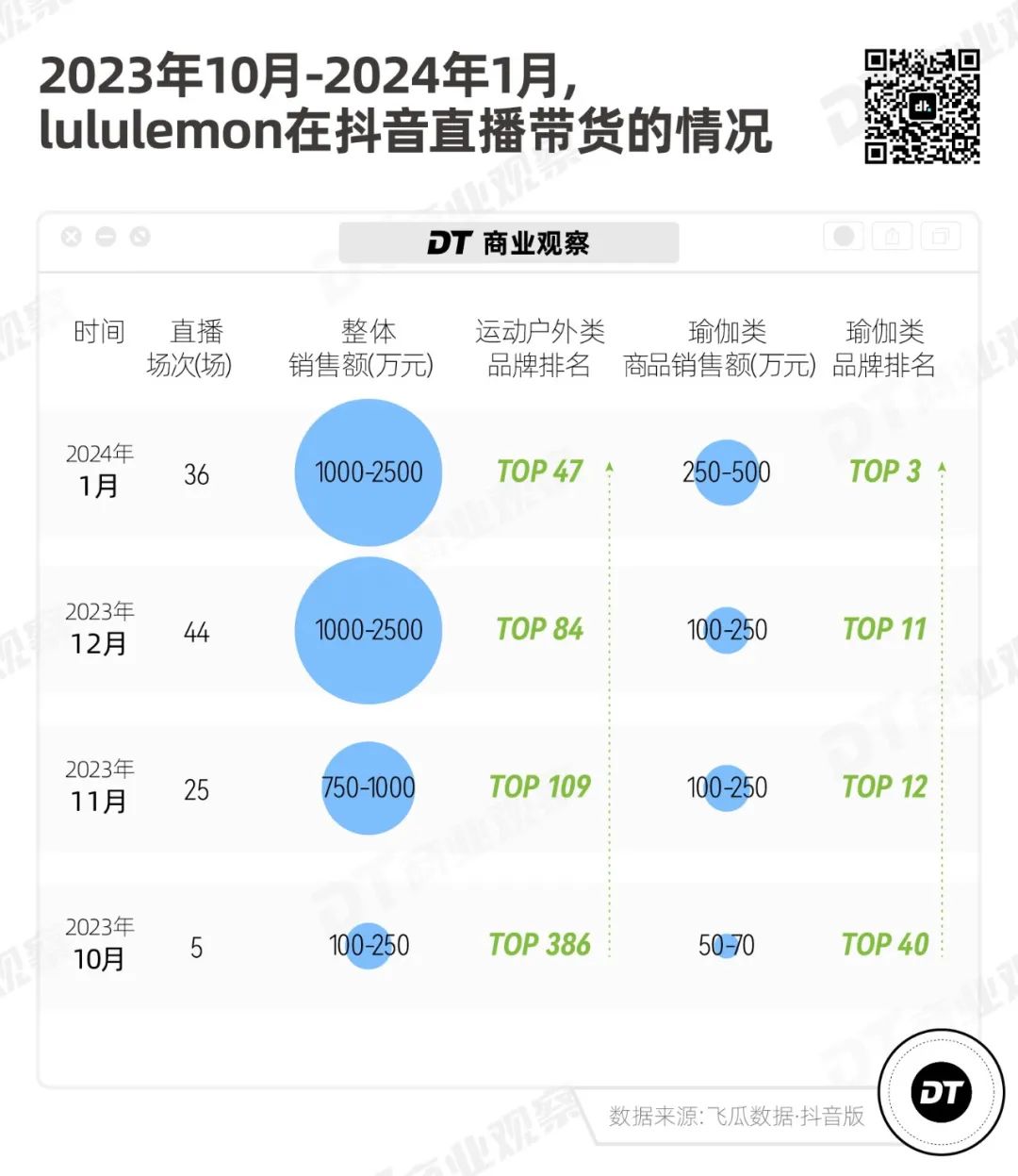 直到今年1月,隨著官方旗艦店開業(yè),lululemon才終于在直播上發(fā)力,做出了一些成績。