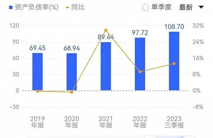 與此同時(shí),人人樂(lè)的門(mén)店數(shù)量持續(xù)縮水。截止2022年底,人人樂(lè)門(mén)店數(shù)量113家,較2020年的149家減少36家,全年未開(kāi)新店,而隨著負(fù)債的走高,人人樂(lè)的現(xiàn)金流同樣緊張,截至2023年三季度末,人人樂(lè)資產(chǎn)負(fù)債率達(dá)108.70%,已處于資不抵債的境地。