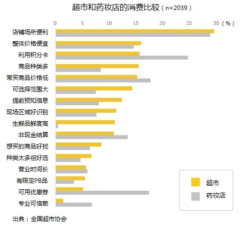 從第二、第三項綜合可見,超市行業(yè)是把質(zhì)量差異化,看作是差別化競爭、提高收益與發(fā)展的首要項目。其中,屬地特產(chǎn)食品是超市商品調(diào)改、優(yōu)化的聚焦項目,也是差異化戰(zhàn)略最優(yōu)先實施項目。其次是健康有機食品,符合生活方式變革以后大眾健康訴求。