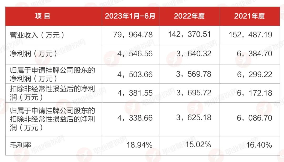 公告顯示,老娘舅2021年度、2022年度、2023年1月至6月營業(yè)收入分別為15.25億元、14.24億元、近8億元,凈利潤分別為6384.70萬元、3640.32萬元、4546.56萬元。