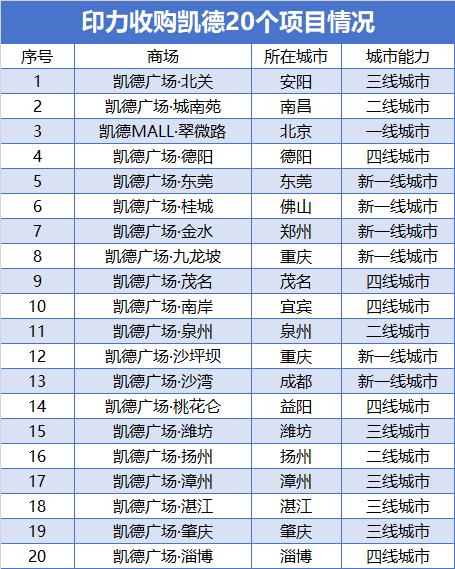 實(shí)際上,萬(wàn)科收購(gòu)后曾考慮推動(dòng)印力集團(tuán)單獨(dú)上市,彼時(shí)印力斥資84億元收購(gòu)了凱德20個(gè)項(xiàng)目,這些項(xiàng)目大多位于三四線城市。