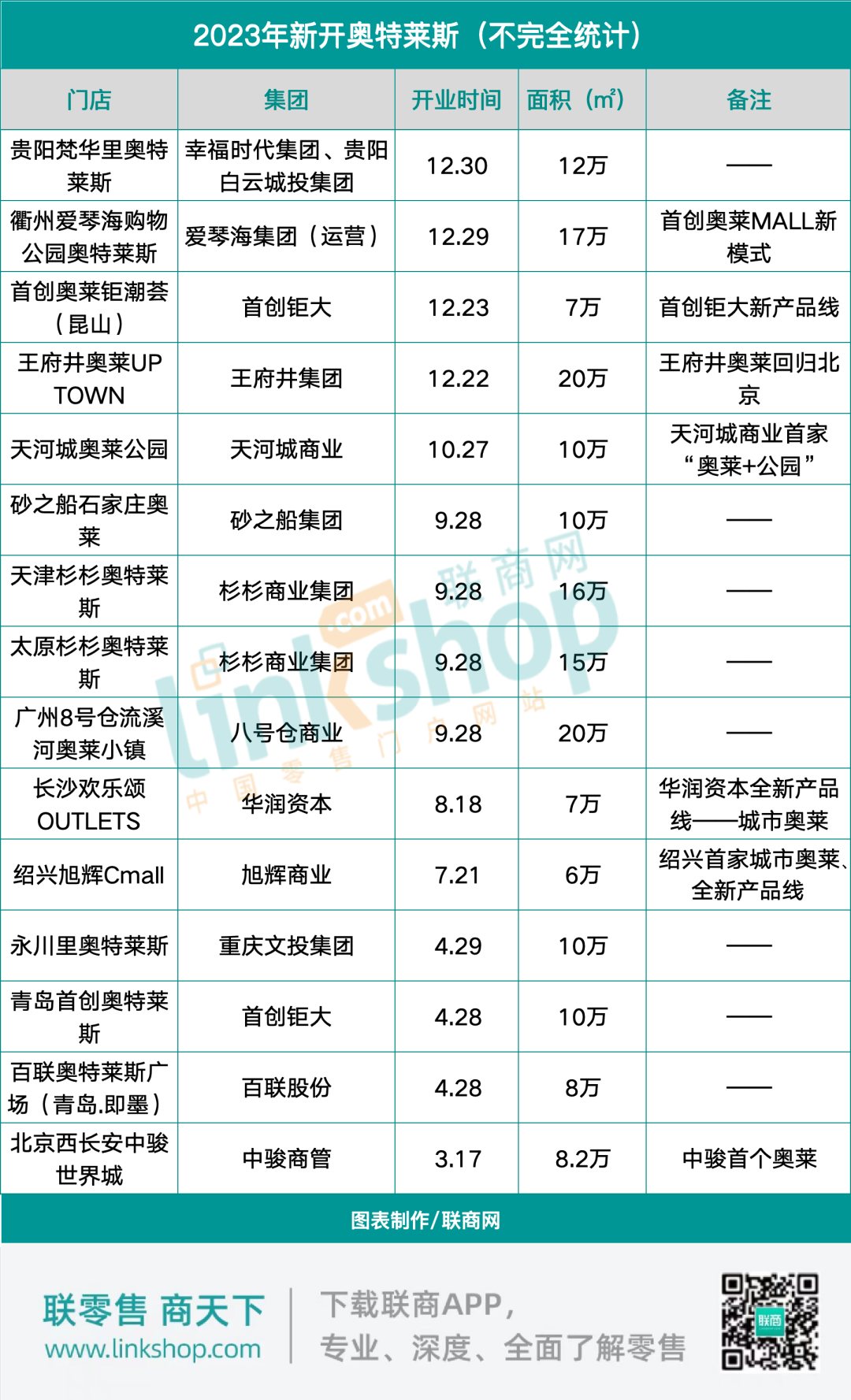 根據(jù)《聯(lián)商網(wǎng)》不完全統(tǒng)計(jì),2023年新開(kāi)奧萊項(xiàng)目15個(gè),更為重要的是,「新玩家」開(kāi)始布局奧萊,擴(kuò)大奧萊陣營(yíng)。