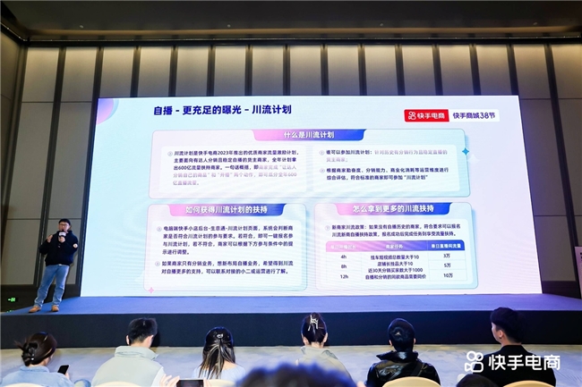 在自播方面,快手電商以更充足的曝光為核心,將在大促期間通過扶搖計(jì)劃、川流計(jì)劃、品牌年框等政策,為自播間帶來更強(qiáng)引流。扶搖計(jì)劃將針對(duì)商達(dá)大場(chǎng)進(jìn)行機(jī)制優(yōu)化,通過確定性的流量分配助力大場(chǎng)銷售爆發(fā)。川流計(jì)劃面向有達(dá)人分銷且穩(wěn)定自播的貨主商家,提供全年預(yù)計(jì)600億流量扶持。品牌年框服務(wù)則將推動(dòng)S品牌快速成長(zhǎng)。
