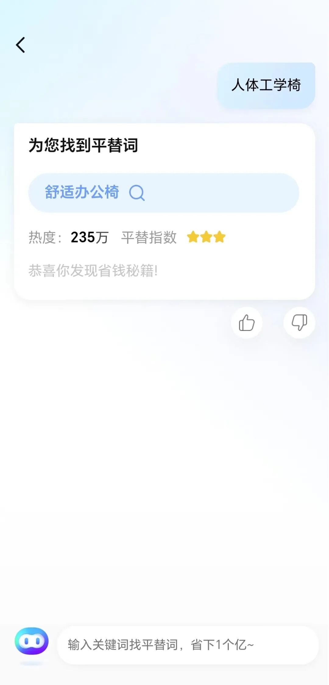 為了進(jìn)一步滿足急劇增長的“平替”需求,1688的AI技術(shù)團(tuán)隊(duì)與搜索推薦團(tuán)隊(duì)加強(qiáng)了緊密合作,于2月9日推出了一款創(chuàng)新性的用戶互動(dòng)產(chǎn)品——“AI幫你找平替”。這款產(chǎn)品在1688App中輕松可尋,只需用戶在搜索欄輸入“AI平替”,即可立即體驗(yàn)該項(xiàng)功能。