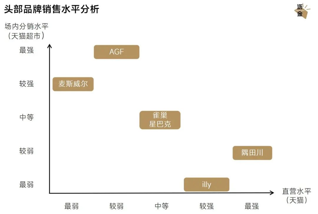 illy減少了天貓超市的份額,為天貓留出更多生存空間,為了保證品牌整體規(guī)模,加速經(jīng)銷商滲透,但短期內(nèi)對(duì)品牌影響較;AGF短期內(nèi)的分銷水平甚至超過麥斯威爾,品牌內(nèi)部追求增長的動(dòng)力可能很強(qiáng)勁,但這種做法可能會(huì)步麥斯威爾的后塵。