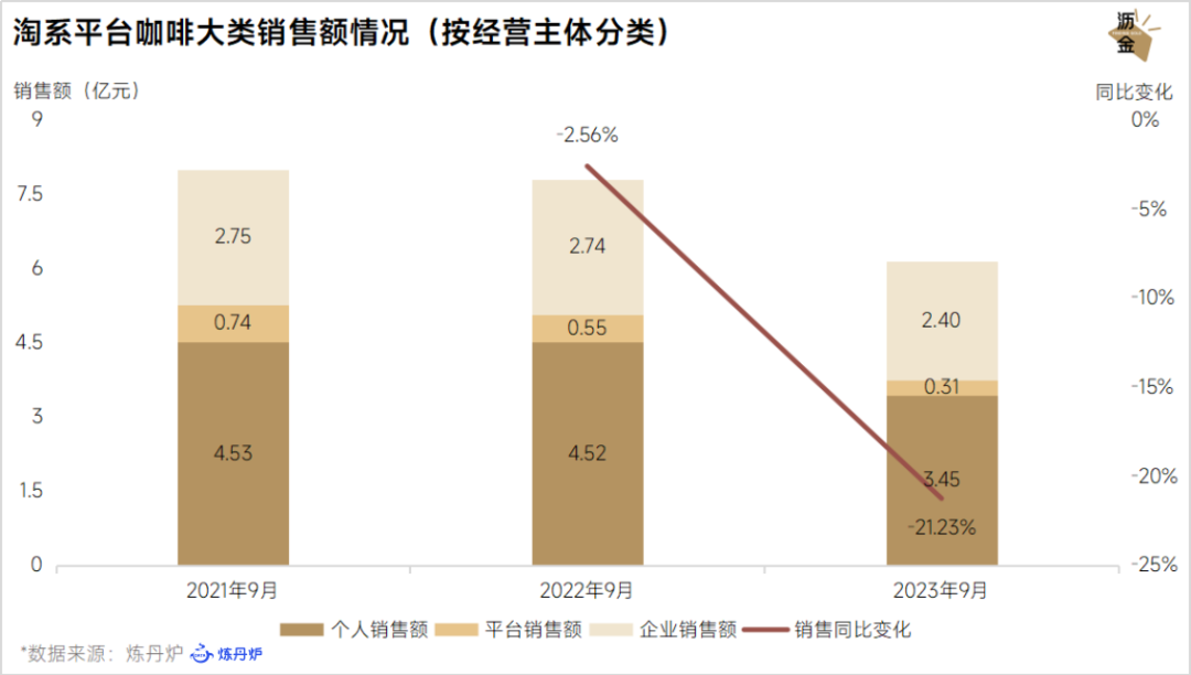 淘系咖啡銷售額下滑超20%