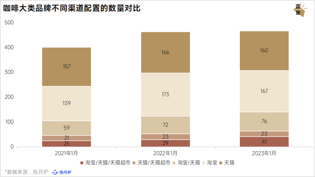 咖啡大類品牌不同渠道配置的數(shù)量對(duì)比