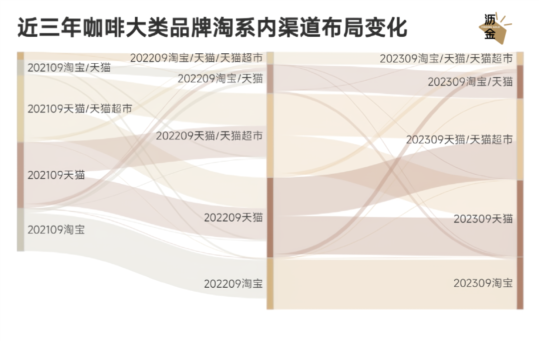 近三年咖啡大類品牌淘系內(nèi)渠道布局變化