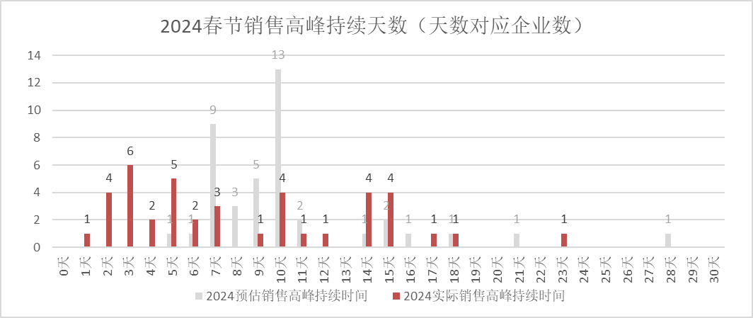 2、因除夕當日不放假,銷售高峰期的持續(xù)時間對比往年有所變短(大部分為7天及以內(nèi))。