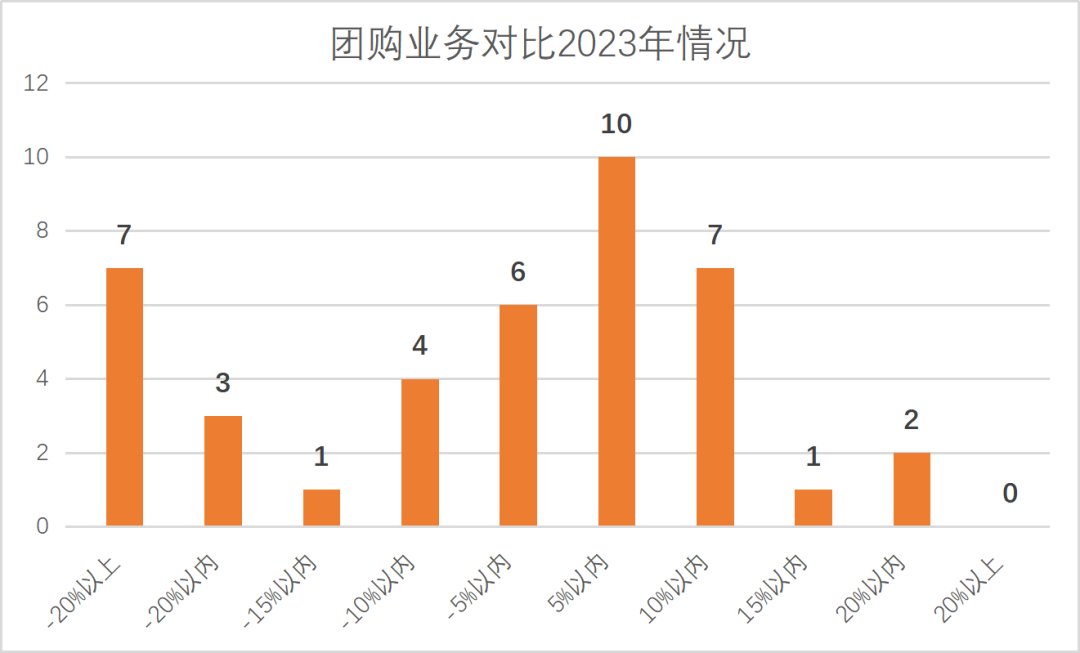 整體來看,好壞各半,團購大幅降低的企業(yè)數(shù)高于大幅增長的企業(yè)數(shù)。