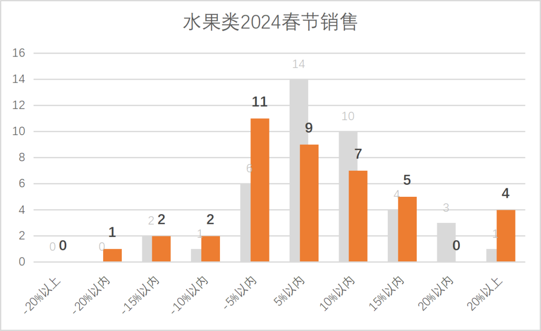 水果銷售好于預期。隨著市場供應量的增加,水果價格穩(wěn)中有降,對消費者有一定的吸引力,特別是中低端禮盒銷售普遍增長。