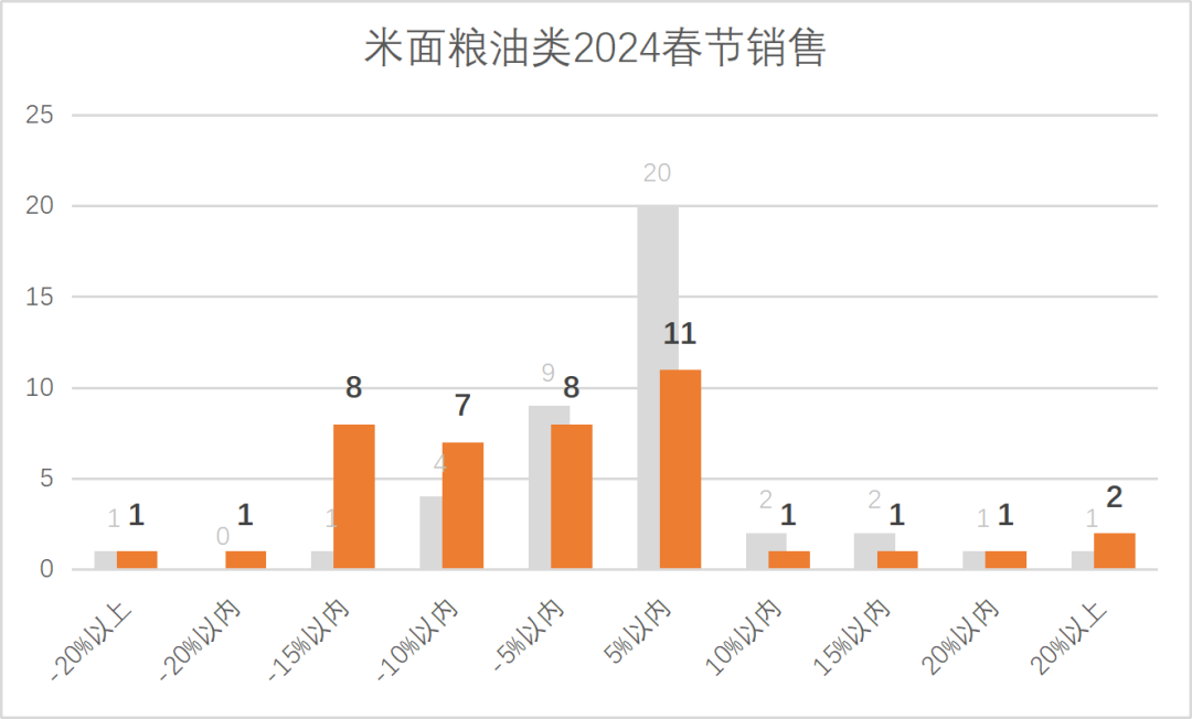 近日,中國連鎖經(jīng)營協(xié)會采購專業(yè)委員會開展了2024年春節(jié)期間銷售數(shù)據(jù)的調(diào)查工作。此次調(diào)查涉及全國41家商超企業(yè),調(diào)查收取的銷售數(shù)據(jù)為區(qū)間數(shù)據(jù),具體信息如下: