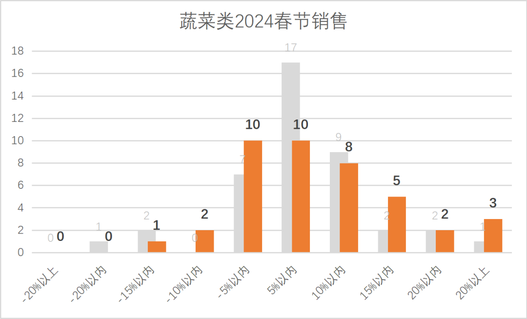 春節(jié)期間蔬菜價格有所上漲,對銷售額有正影響。
