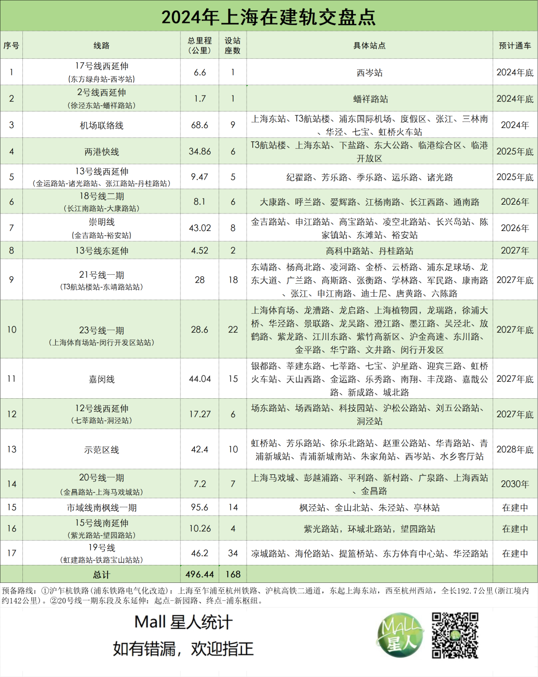 2024年底,上海首條新建的市域鐵路線——全長(zhǎng)68.6公里的機(jī)場(chǎng)聯(lián)絡(luò)線將通車。2號(hào)線西延伸段(徐涇東至蟠祥路)和17號(hào)線西延伸(東方綠舟至西岑)年底也將各新增1座車站。