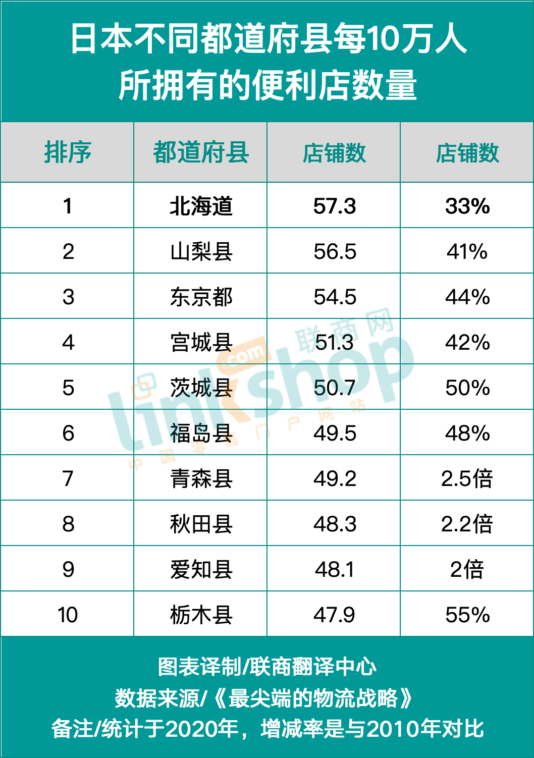 但是,排名前三的區(qū)域情況各不相同。北海道幅員遼闊,便利店和人都分散開來;山梨縣近9成面積是山地,便利店集中在有限的生活圈內;而東京則大多地勢平坦,無論走到哪里,步行不遠就能找到想要的便利店。