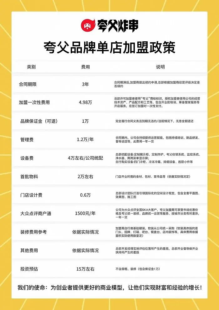 這與夸父炸串在公開信息中展示的加盟政策保持一致。