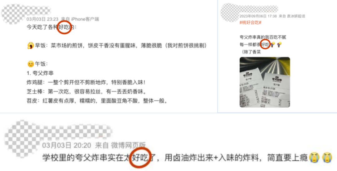 “貴”是夸父炸串最明顯的標(biāo)簽,“好吃”則可以排在第二位。