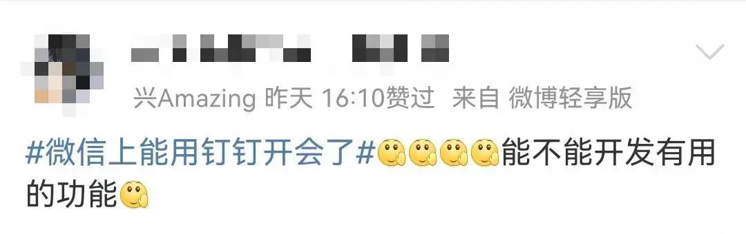 對于釘釘?shù)男鹿δ埽簧倬W(wǎng)友表示支持,認為提升了用戶體驗,“之前和客戶開會還要先下載客戶端,這回方便很多!边有觀點認為此舉有效打通了釘釘和微信生態(tài)之間的壁壘,實現(xiàn)了互聯(lián)互通,“最終走向都是在保留自己的產(chǎn)品業(yè)務(wù)核心的前提下開放融合。”當然,也有網(wǎng)友持不同的態(tài)度,有評論稱“能不能開發(fā)有用的功能!