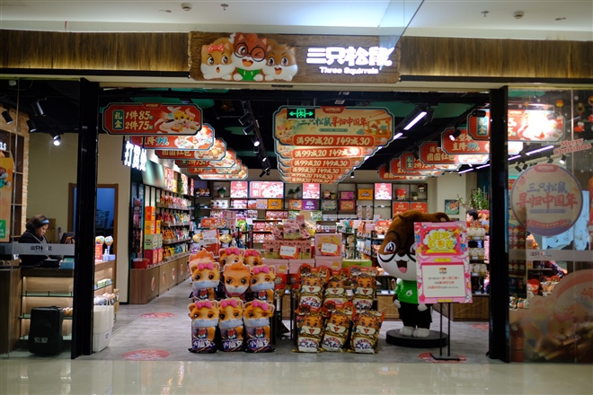 原先,量販零食店的主要競爭對手除了細分賽道里的同行,就是三只松鼠這樣未進駐量販店的零食品牌。這下,問題直接迎刃而解。盡管可能存在分成讓利的部分,但有了三只松鼠這樣的零食界頂流品類,量販店的競爭力無疑又將加上一個重重的砝碼。