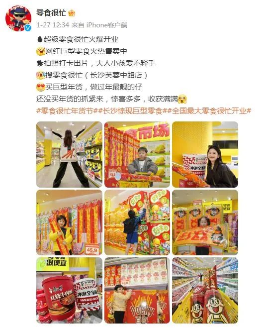 1月27日,全國最大零食門店“超級零食很忙”在網(wǎng)紅美食之都長沙正式開業(yè),其中一樓為零食購物區(qū),二樓是以零食為主題的休閑娛樂區(qū),可以供顧客拍照打卡玩樂。
