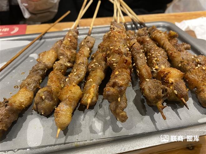 我最常去的這家牧蘭盛昭通小肉串,附近有著名的燒烤一條街。雖然只相隔30米,但客流反差巨大,燒烤街的多家門店都冷冷清清,牧蘭盛卻火爆獨美。