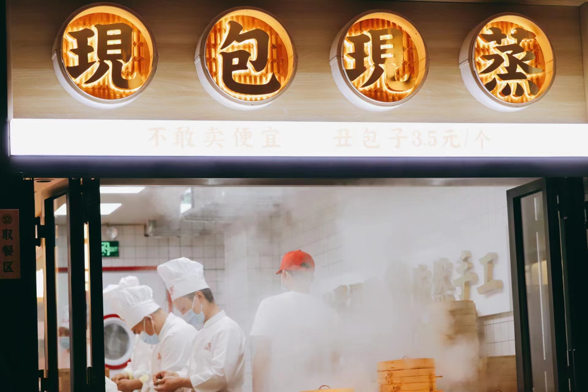 門店櫥窗內(nèi),工作人員正在現(xiàn)制包子(受訪者供圖)