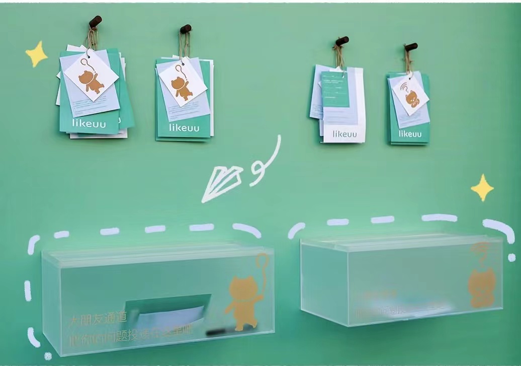 首店當(dāng)前仍處于圍擋中,在正式營(yíng)業(yè)之前,likeuu和知名心理咨詢師、北京大學(xué)臨床心理學(xué)博士李松蔚老師聯(lián)合發(fā)起“青春期怎么這么難啊”的話題討論,并特別設(shè)置了“小朋友&大朋友問題投遞處”,與消費(fèi)者進(jìn)行打卡互動(dòng)。
