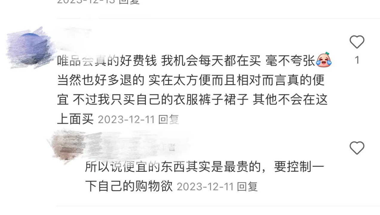 圖:小紅書(shū)網(wǎng)友對(duì)唯品會(huì)的評(píng)價(jià)