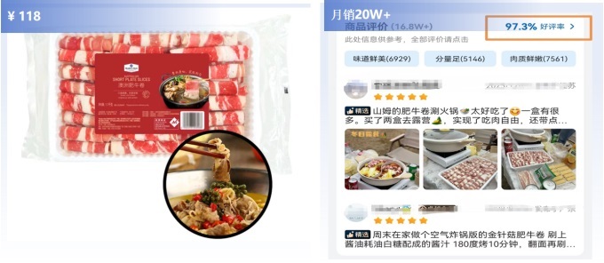 推薦理由:能完美適應(yīng)火鍋、煮面、烤肉多種場景,份量、口感受到用戶高度評價,大廚烹飪榜熱度TOP1。