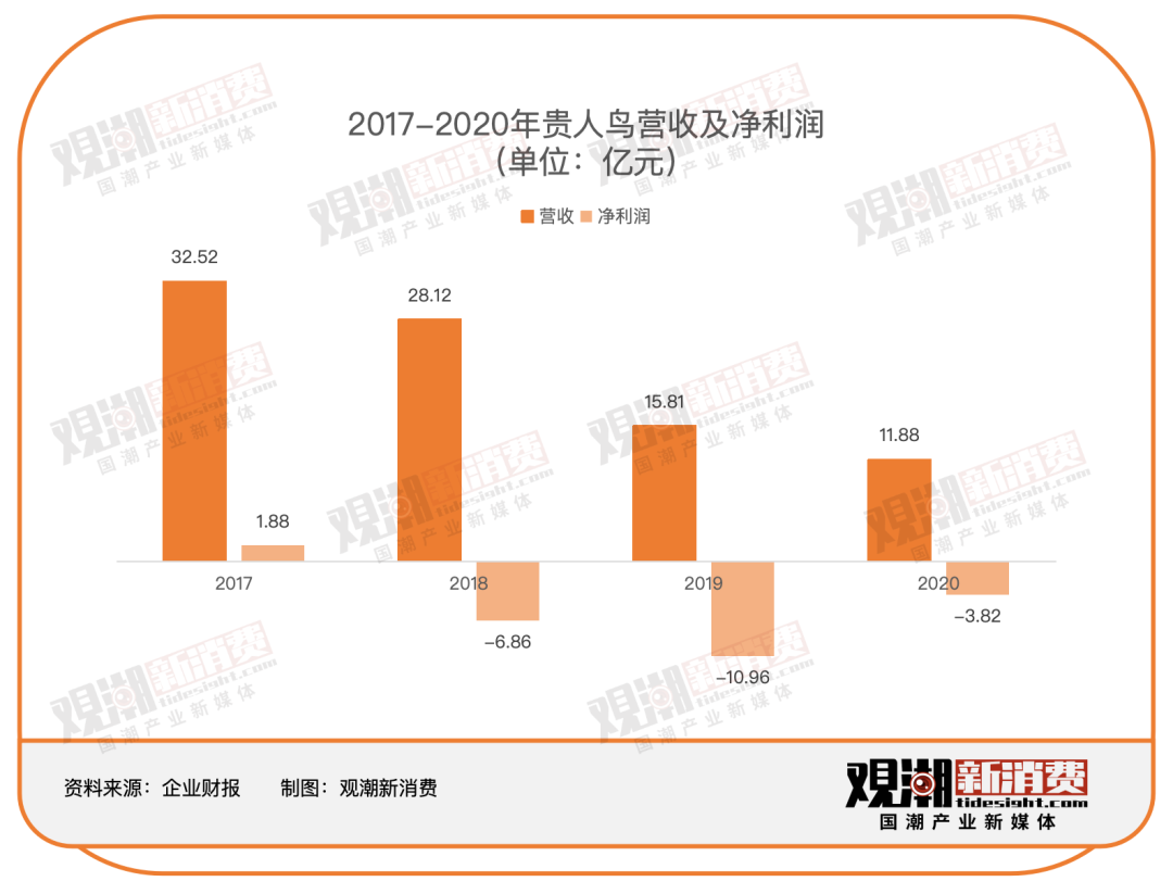 2020年,貴人鳥曾因連續(xù)三年虧損被實(shí)施退市風(fēng)險警告,破產(chǎn)重組后扭虧為盈,如今看來卻只是“回光返照”。
