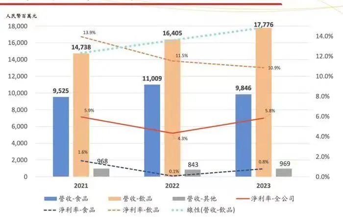 但在方便面板塊中,2023年銷(xiāo)售收入為95.943億元,而其背后的食品業(yè)務(wù)營(yíng)收,與2022年相比下滑約10.5%。