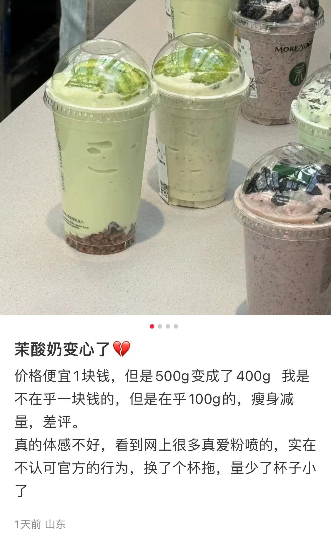 茉酸奶回應(yīng)“大杯變小杯”