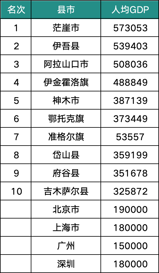 做商業(yè)通常喜歡看人均GDP,以便推算出對應業(yè)態(tài)的發(fā)展。從這張表里可以看出,縣城人均GDP TOP10的門檻在32萬,遠超過一線城市廣州的基底15萬,頭部57萬更是一線城市遙不可及的。部分縣城人均GDP的發(fā)展是遠超很多人認知的。為什么縣城人均GDP TOP10的縣城很多人沒有聽過,或者聽過也不覺得當?shù)亟洕卸嗪茫?/p>