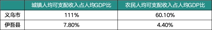 義烏市的問題是城鄉(xiāng)收入拉大,出來做點小生意的收入遠大于種田。一些人均可支配收入占人均GDP太低的縣城,主要問題是沒什么機會或者機會正在孕育中。