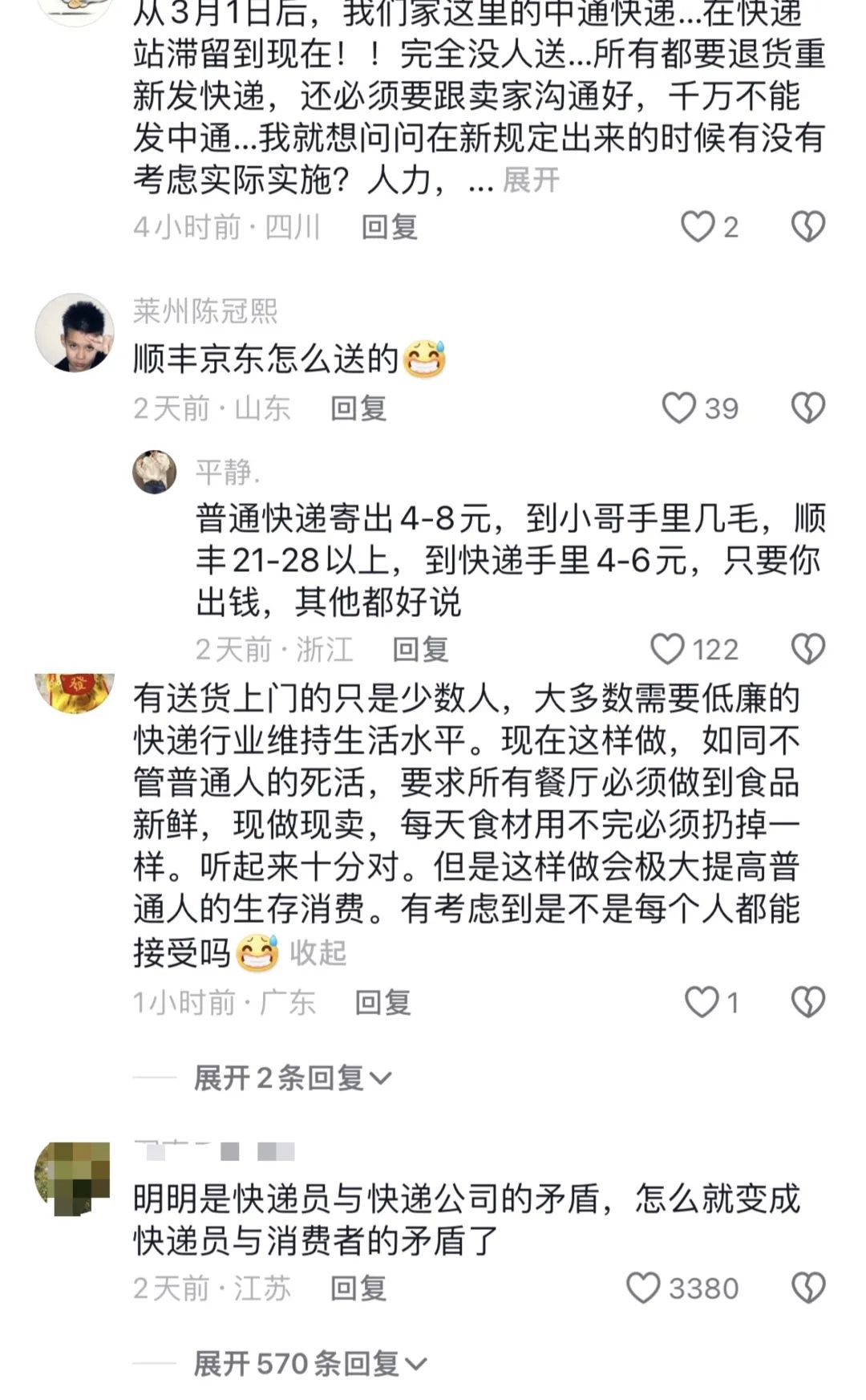 還有小作文將新規(guī)解讀為借整頓快遞打壓電商,促進(jìn)消費回流線下與傳統(tǒng)實體——大概快遞行業(yè)自己也想不到,埋頭干了幾十年的苦活,還能有地位如此崇高的一天。