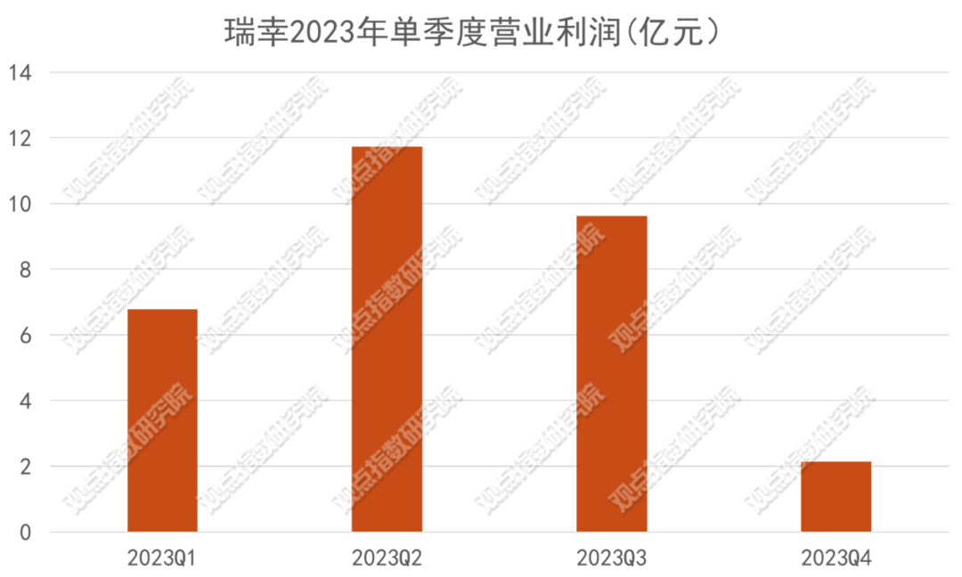 觀點指數認為,利潤下滑的原因,與瑞幸去年下半年實現(xiàn)價格戰(zhàn),推出9塊9咖啡有較大關聯(lián)。時間線上,瑞幸從2023年6月份推出9塊9感恩回饋活動,與2023年三季度利潤出現(xiàn)下滑的時間契合。