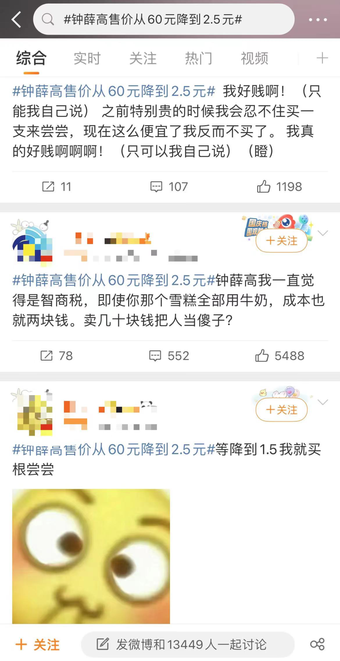 轉折點在2023年。鐘薛高開始負面不斷,股權凍結,員工“網絡討薪”,F(xiàn)在更因價格大跳水被質疑涉嫌欺詐。