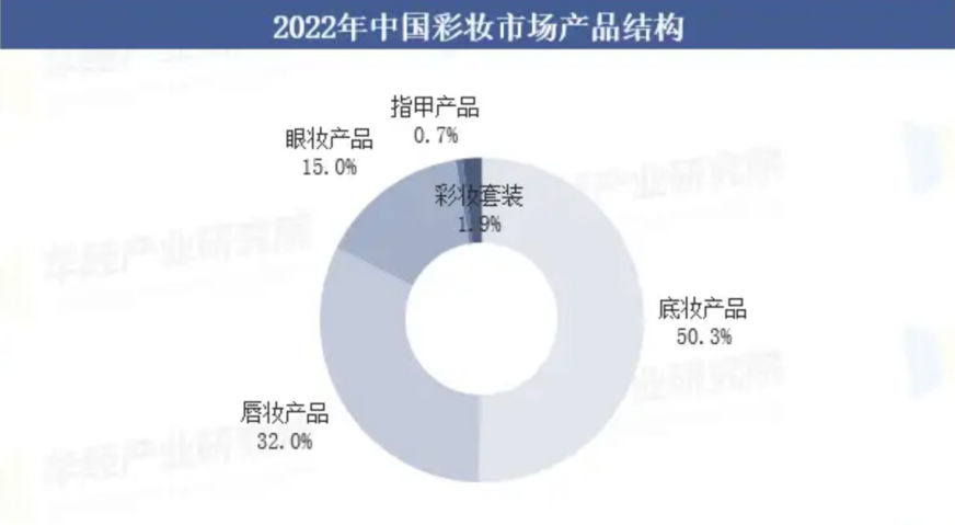 歐睿國際的數據顯示,2022年底妝在彩妝整體銷售額中的占比首次突破了50%,達到279.52億元,成為整個彩妝市場最關鍵的細分市場。并且預計到2027年,底妝在彩妝整體市場中的占比將達到54.26%,銷售額預計將達到422.49億元。
