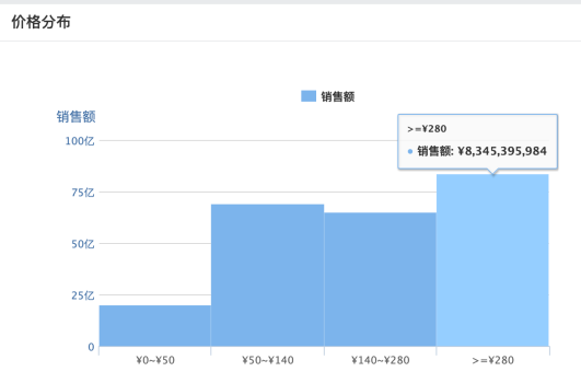 以上占比為品牌在該價格段的銷售額與TOP10品牌在該價格段總銷售額的百分比