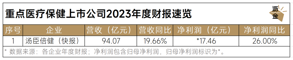 2023年,湯臣倍健營(yíng)業(yè)收入94.07億元,同比增長(zhǎng)19.66%,歸母凈利潤(rùn)17.46億元,同比增長(zhǎng)26%。