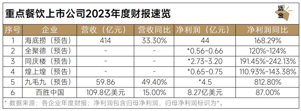 重點(diǎn)餐飲上市公司2023年度財(cái)報(bào)速覽