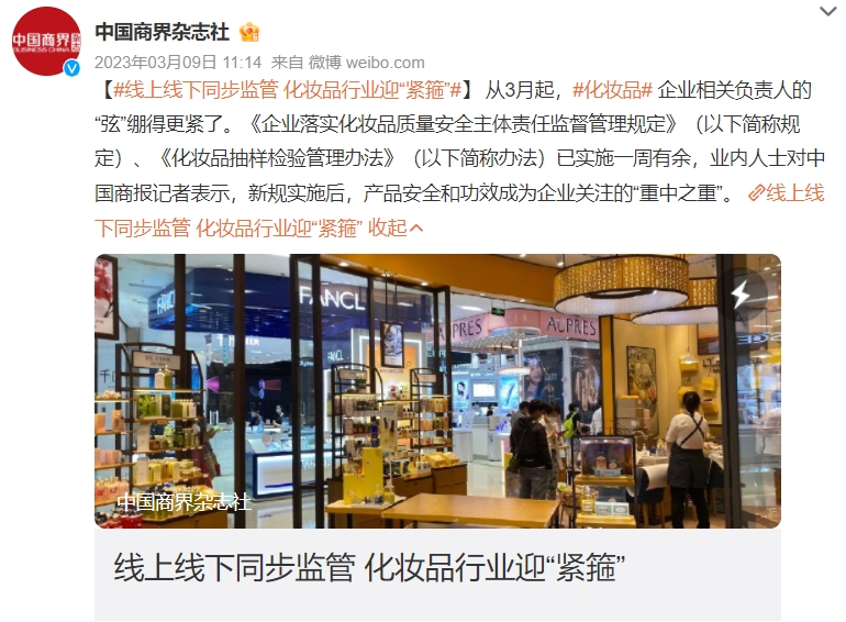 首先是監(jiān)管的加強(qiáng)。2022年8月,國家藥監(jiān)局向社會公開征求《化妝品網(wǎng)絡(luò)經(jīng)營監(jiān)督管理辦法(征求意見稿)》,對化妝品電商平臺和平臺內(nèi)化妝品經(jīng)營者管理做出新規(guī),落實了電商平臺的責(zé)任。2023年3月1日起,國家藥品監(jiān)督管理局發(fā)布的《企業(yè)落實化妝品質(zhì)量安全主體責(zé)任監(jiān)督管理規(guī)定》、《化妝品抽樣檢驗管理辦法》兩部新規(guī)正式施行,為行業(yè)亂象戴上”緊箍“。