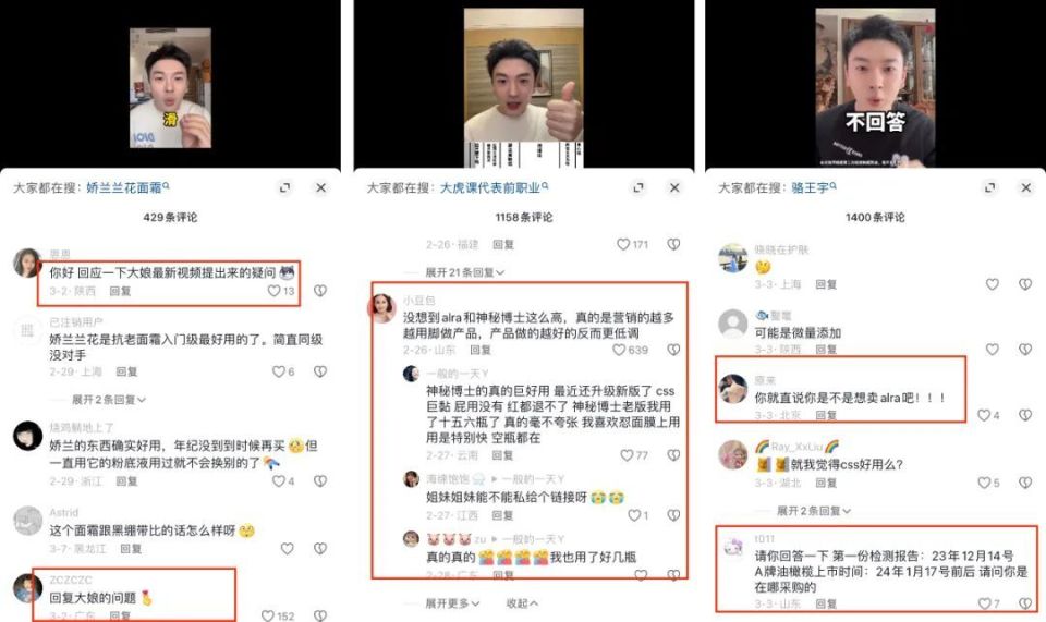 但同前文“靈魂拷問補(bǔ)水騙局”事件類似,“CSS事件”依然有疑點(diǎn)被指出。有網(wǎng)友指出,“大虎課代表”在視頻里其實有暗暗通過拉踩 CSS 而抬高另外被送去檢驗的其中兩個品牌—“ALRA”和“神秘博士”,認(rèn)為這其實是場有預(yù)謀的“暗廣”。