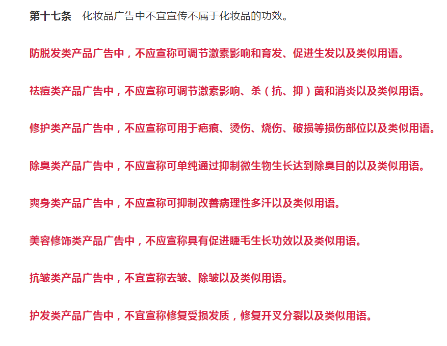 3月6日,上海市市監(jiān)局和藥監(jiān)局發(fā)布關(guān)于《上海市化妝品行業(yè)廣告宣傳合規(guī)指引》(以下簡稱《指引》),并自發(fā)布之日起實施;其中指出,“化妝品廣告中不宜宣傳不屬于化妝品的功效”,比如:在抗皺類產(chǎn)品廣告中,不宜宣稱祛皺、除皺以及類似用語。