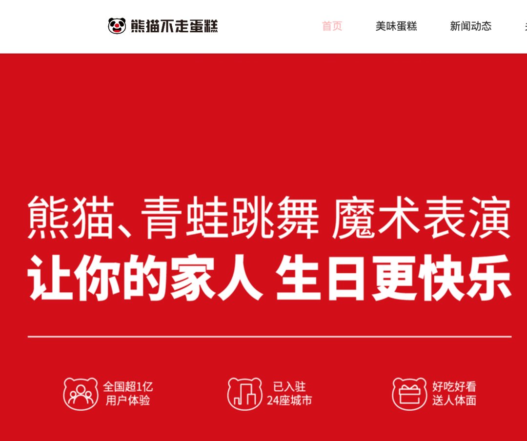 根據(jù)官網(wǎng)介紹,熊貓不走蛋糕是烘焙電商品牌,以自主創(chuàng)新的“產(chǎn)品+服務(wù)”模式,通過線上下單,熊貓人免費(fèi)送蛋糕上門,提供跳舞、魔術(shù)等表演,讓每位用戶都有更快樂的下單體驗(yàn)。