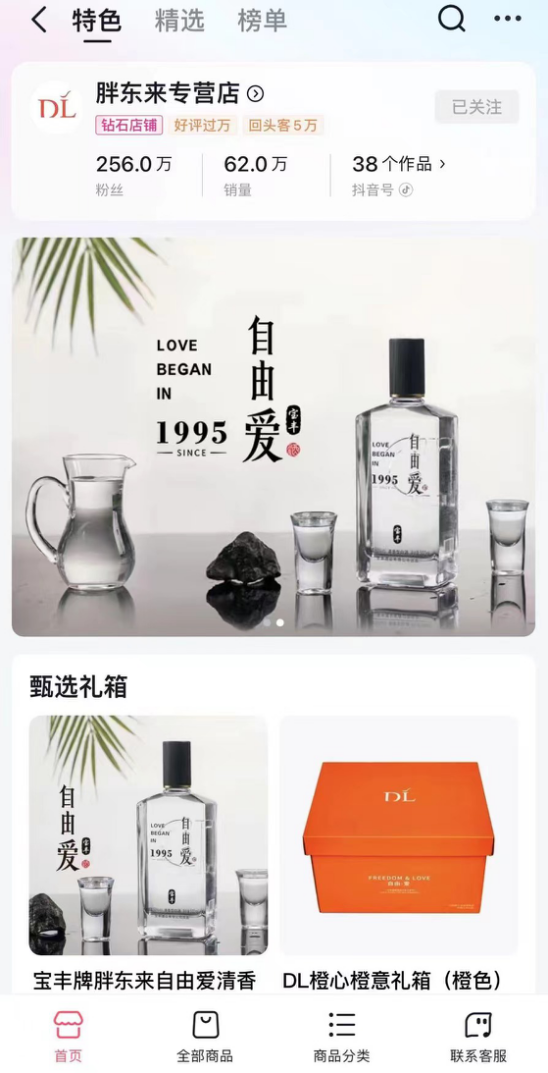 除了微信端,另外一個由官方認(rèn)證的線上渠道是“胖東來抖音商城”,于2022年12月正式推出,目前粉絲數(shù)量已達到256萬,銷量62萬,在售產(chǎn)品有7種,也都是胖東來的自有品牌。
